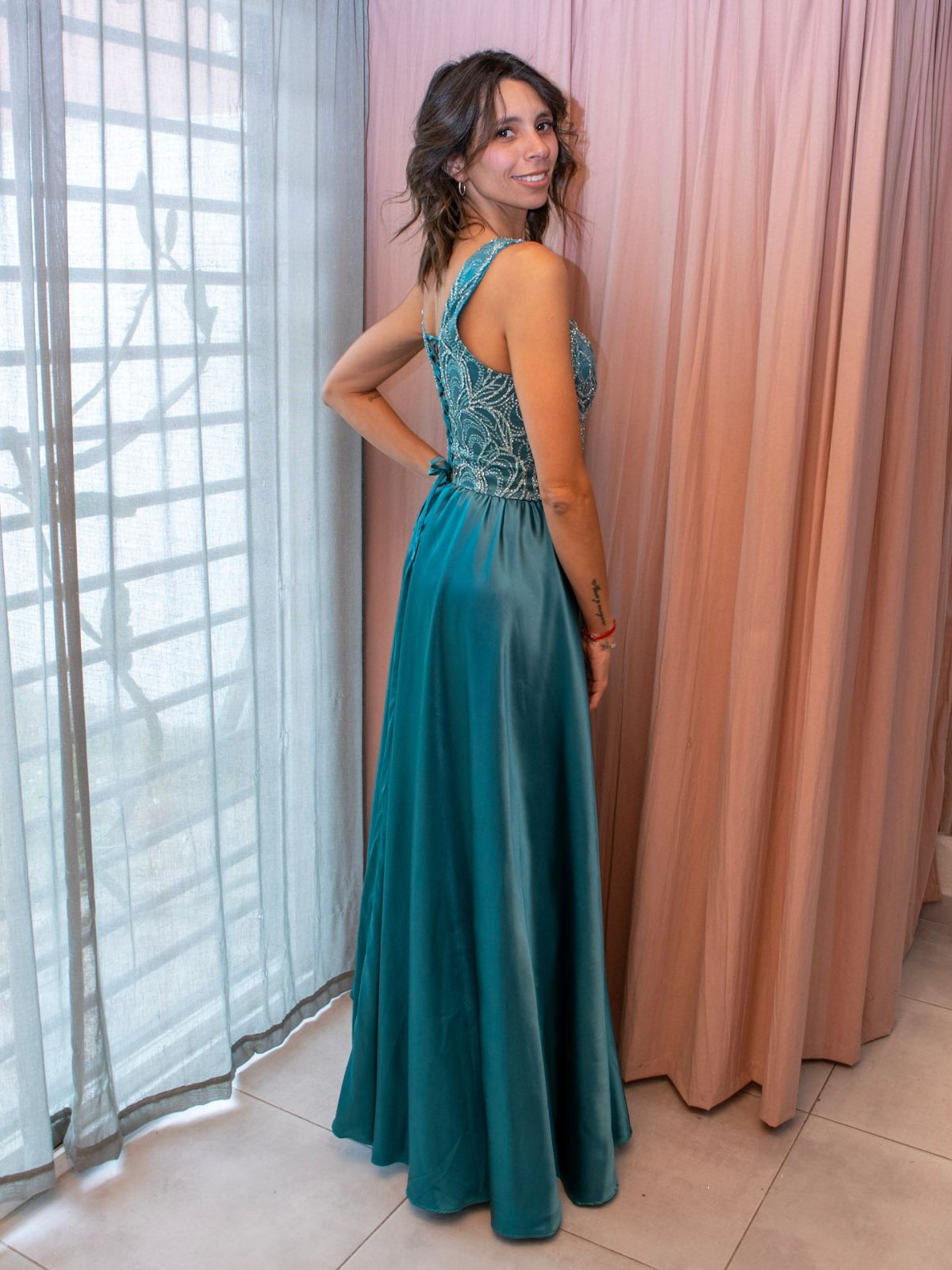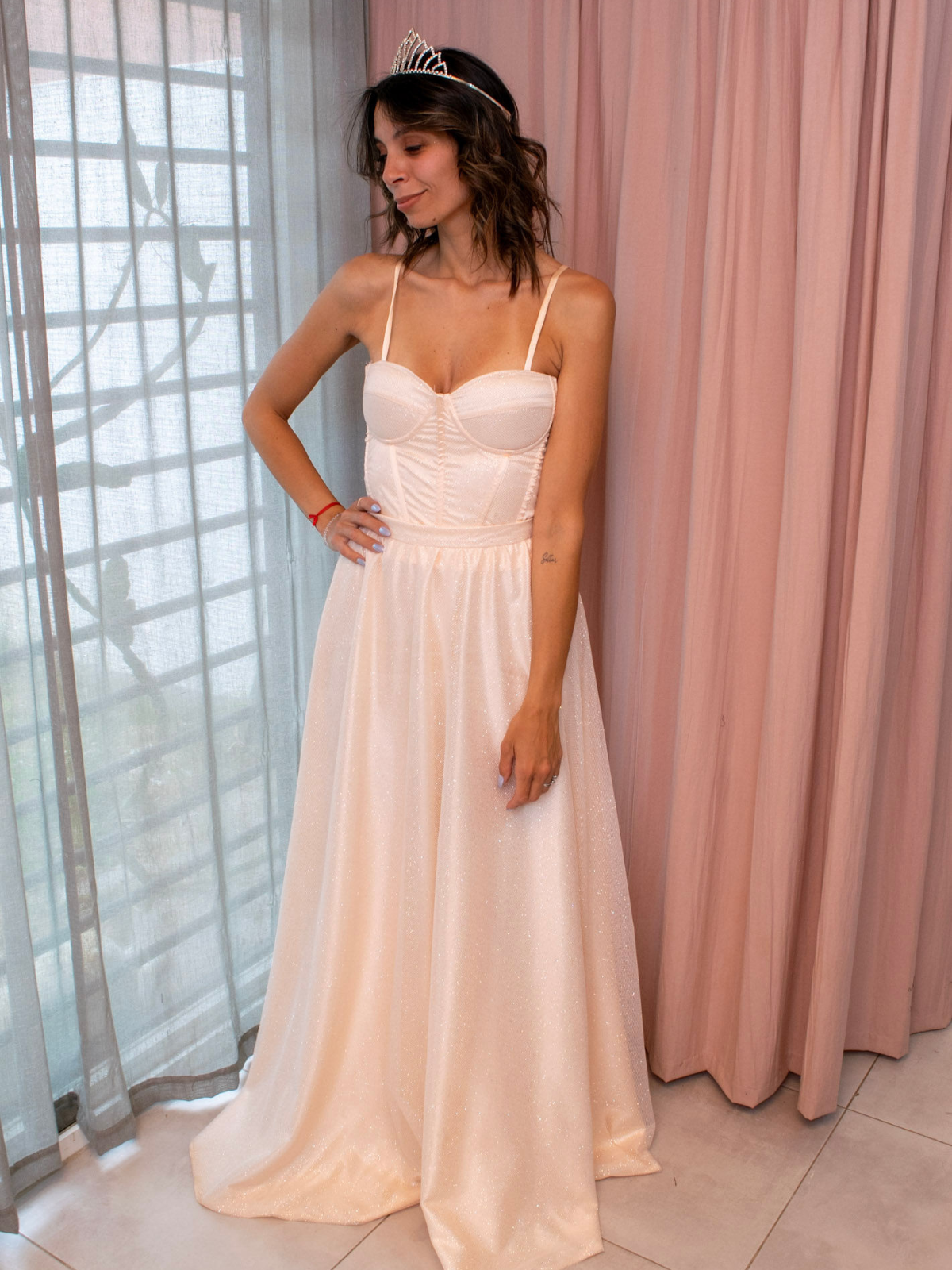 Cada vestido que creamos nace de un proceso artesanal, donde cada tela y cada puntada cuentan una historia. Transformamos sueños en diseños que acompañan a nuestras clientas en momentos especiales.